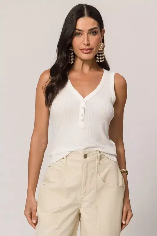 Seu decote V valoriza a silhueta feminina, enquanto a textura delicada da malha ribana adiciona um toque sofisticado ao visual. O caimento leve e confortável faz dela uma peça versátil, perfeita para usar sozinha ou em sobreposições, garantindo charme e praticidade ao seu look.