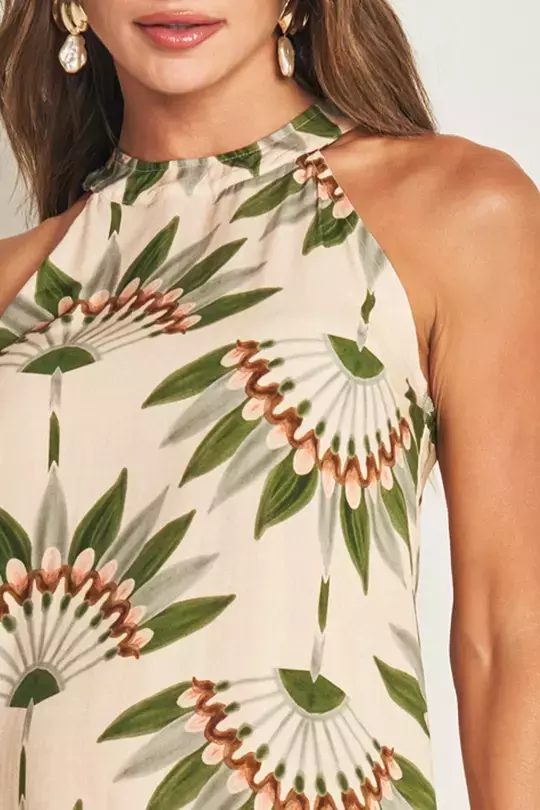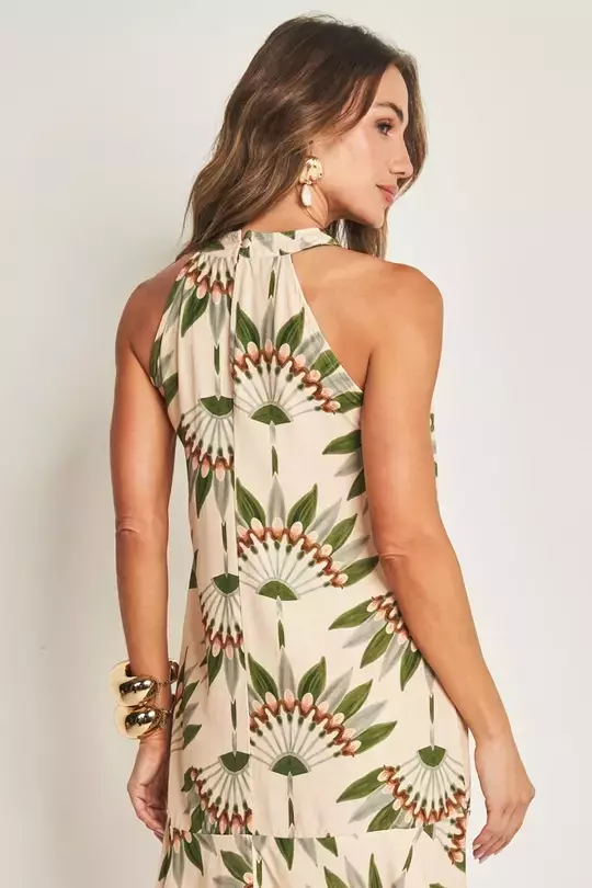 A leveza da estampa verde palm que remete a energia da natureza traduzida em formas envolventes.